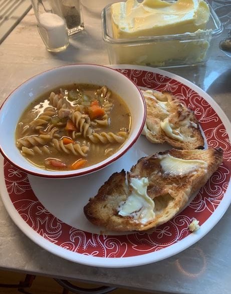 One cup of whatever you got in the fridge. I used red pepper, onion and those frog balls I pickled a couple of months ago.