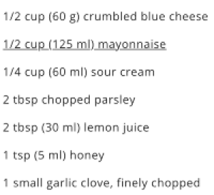 You might notice that I gave you wings and blue cheese. That was no accident. There are hundreds of blue cheese dip recipes but I like the ones where the sharpness of the mayo is cut with some sour creme. I also like a couple of shots of Valentina hot sauce in mine. Your call. This will get you started: