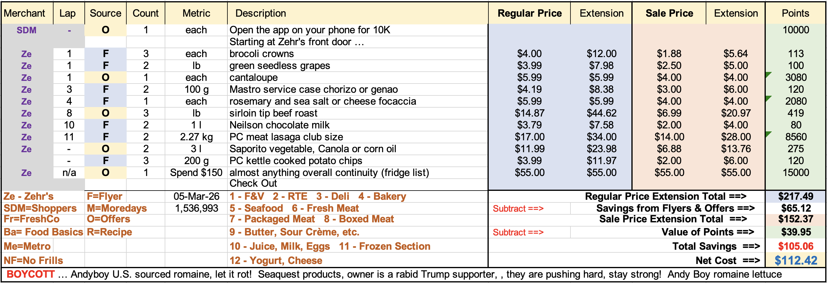From the Offer standpoint, there was a weird one? Open the app (I assume on your phone) after March 5th and get at least 10,000 points. Apparently, you don't have to buy anything? I don't know what they get out of me opening their app, but hopefully, all 17 million card holders do that ... and shop at Food Basics this week. This sort of silliness needs to be tamped down mercilessly. If anyone, gets the points without buying anything or gets more than the 10K promised ... let me know?